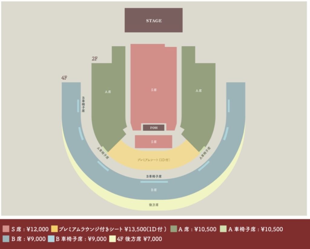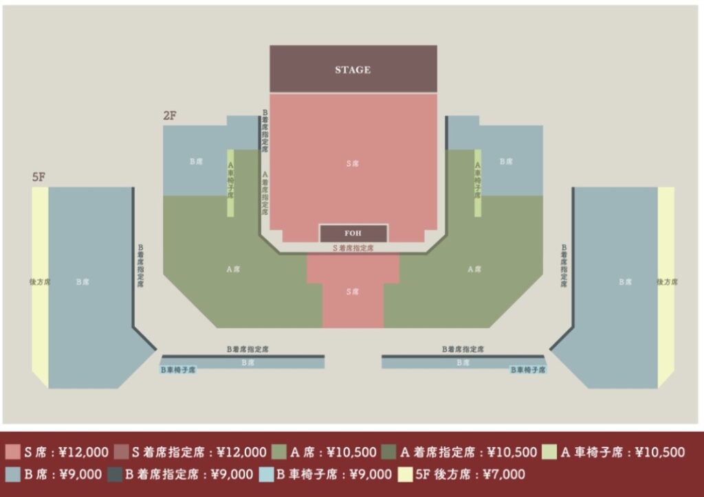2日目の公演については、すべて着席のため、各種「着席指定席」カテゴリーの販売はないそうです。